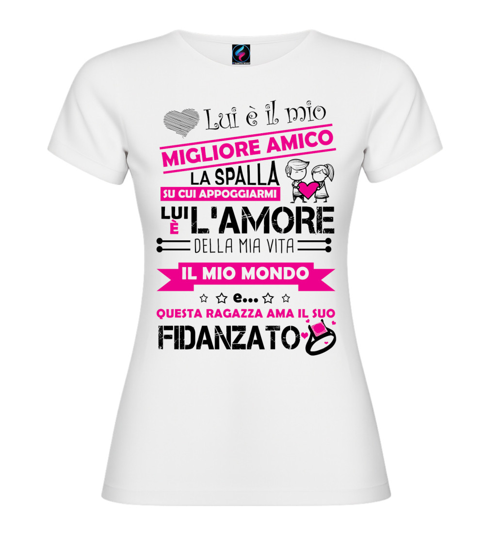 La frase finale “Questa ragazza ama il suo fidanzato” rende il messaggio ancora più diretto, dolce e speciale. Perfetta per chi desidera indossare ogni giorno un capo romantico oppure fare un regalo affettuoso, originale e diverso dal solito.