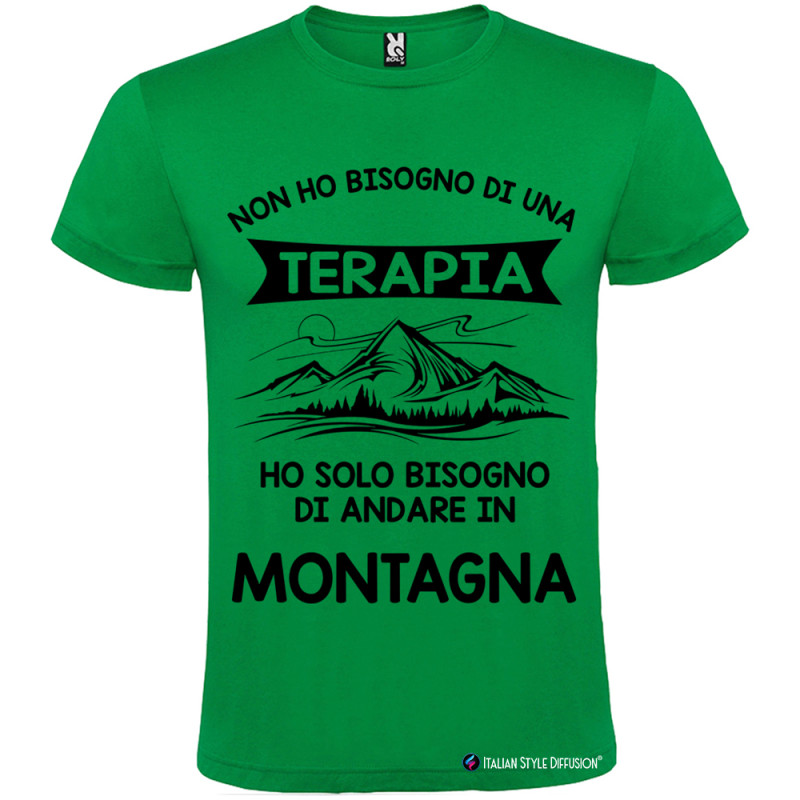 Se la tua vera terapia è respirare aria buona, camminare tra i boschi e perderti nei panorami, questa t-shirt fa per te: “Non ho bisogno di una terapia, ho solo bisogno di andare in montagna” con grafica montagne dal look pulito e deciso. Perfetta per chi vive di trekking, rifugi e libertà.