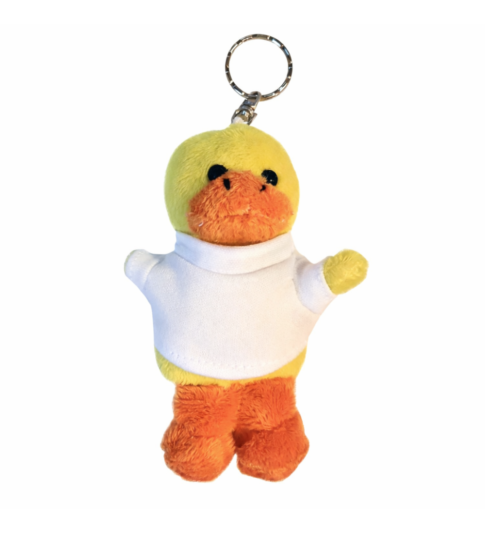 Portachiavi personalizzato in peluche a forma di paperella con t-shirt stampabile: crea la tua stampa con foto, immagine o scritta direttamente sulla maglietta.