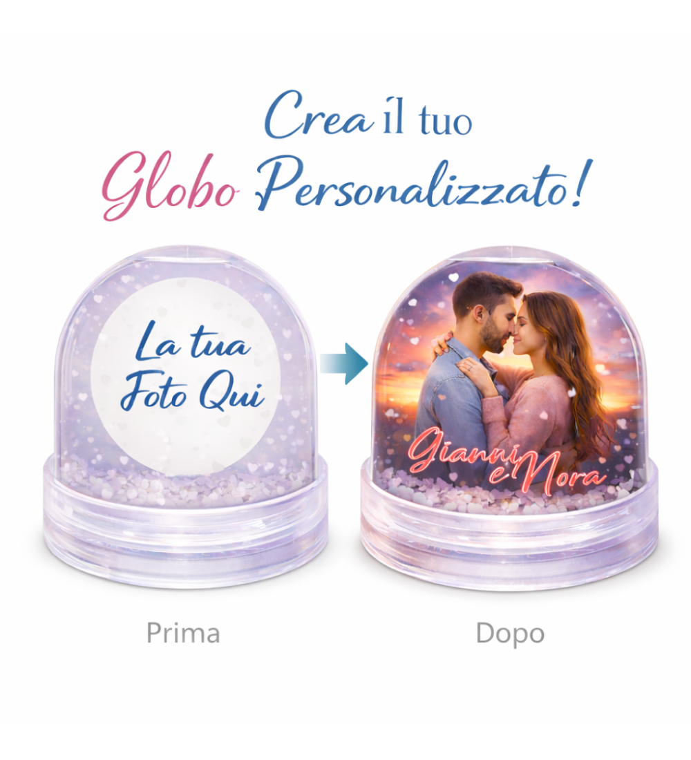 Rendi unico il tuo regalo con un globo di neve con foto personalizzata.