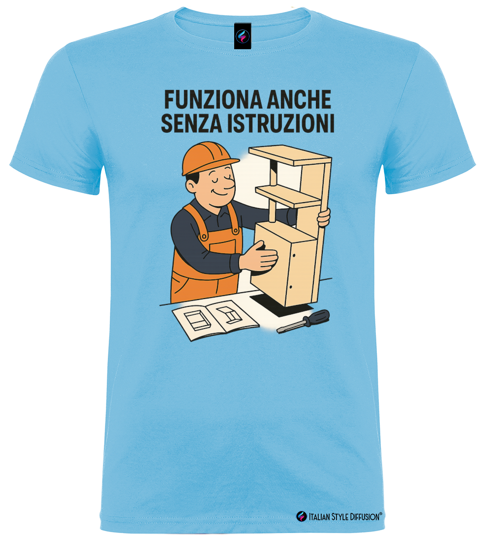 Maglietta “Funziona Anche Senza Istruzioni” – L’ironia di chi ce la fa comunque!