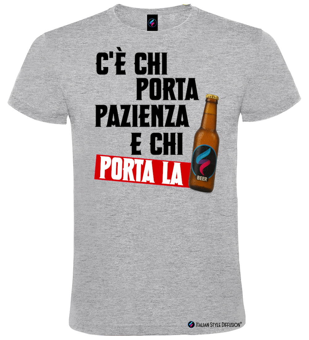 Maglietta C’è chi porta pazienza e chi porta la birra – Maglietta divertente – Italian Style Diffusion®